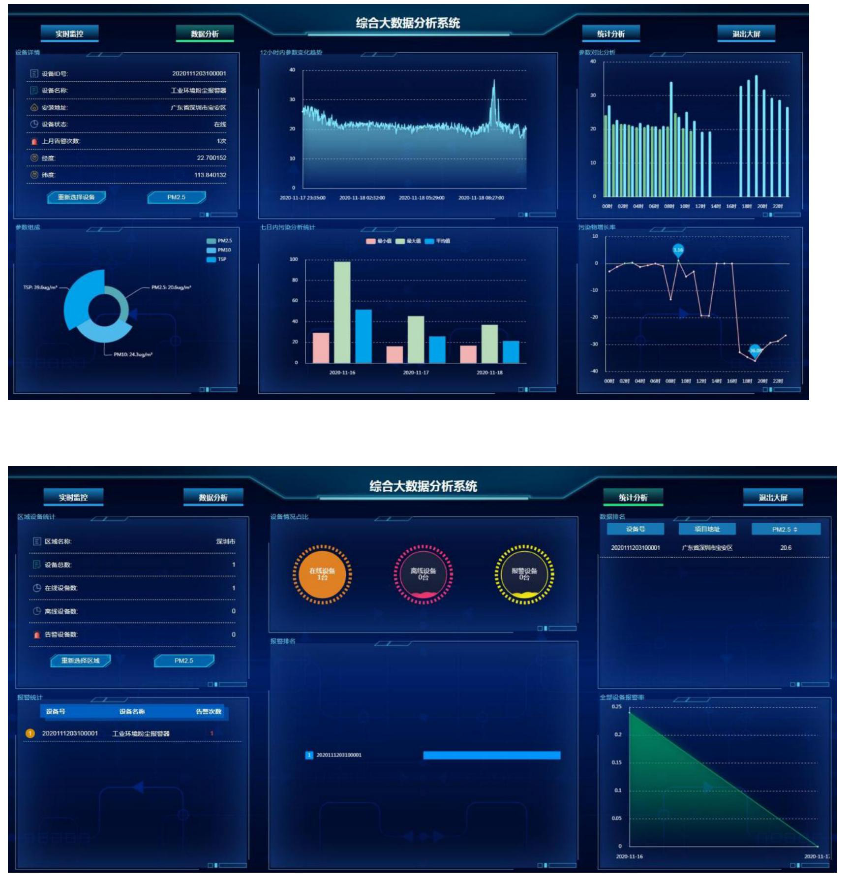 ⑴數(shù)據(jù)中心:單點(diǎn)設(shè)備實(shí)時(shí)數(shù)據(jù)查看,國控?cái)?shù)據(jù)同屏輸出參考,數(shù)據(jù)曲線變化分析,實(shí)時(shí)掌控?cái)?shù)據(jù)動(dòng)態(tài)。